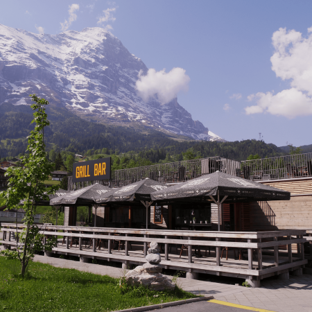 A chilly lounge atmosphere right next to the lodge and the Lütschine river, with rooftop terrace, barbecue and cool & hot drinks.
