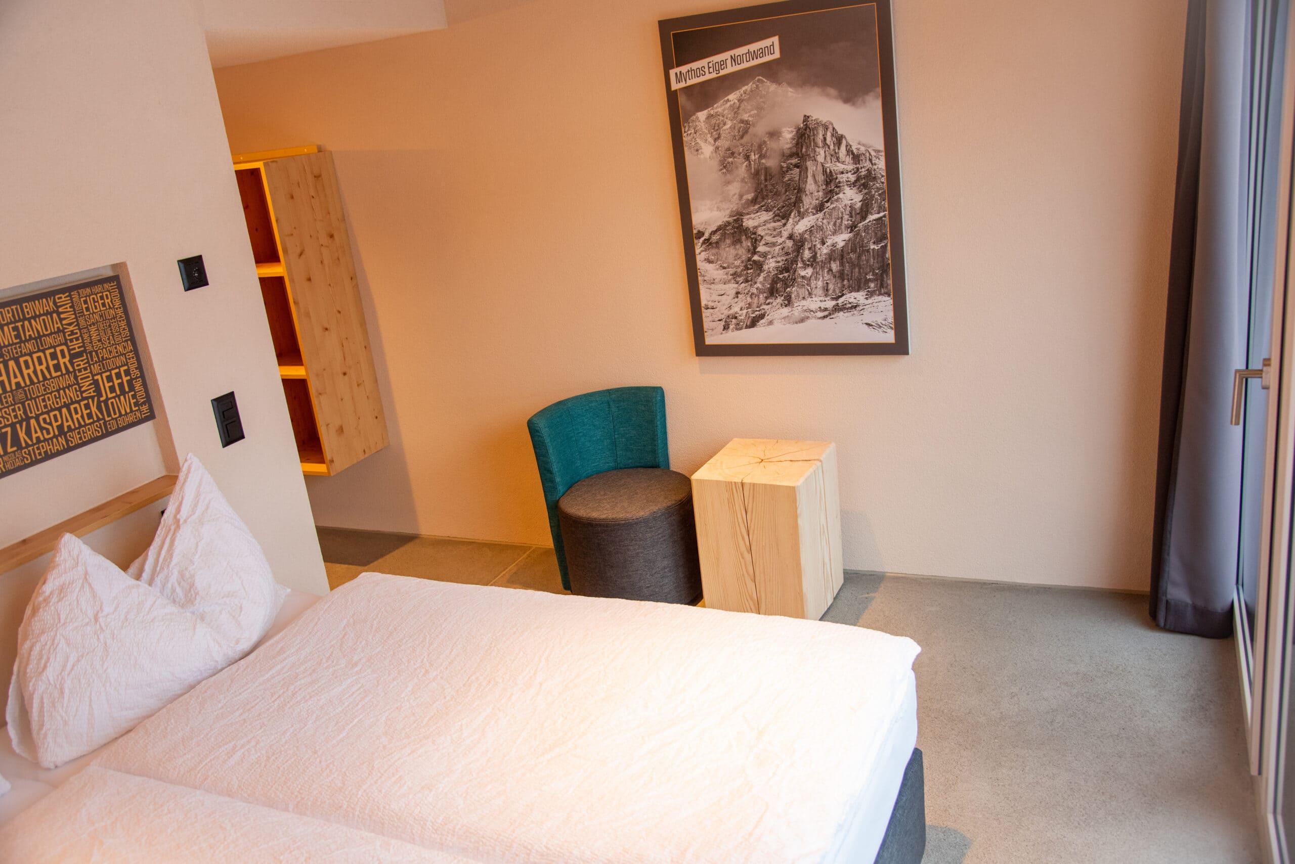 In these rooms, everything revolves around the wall: the Eiger North Face and its climbers. Which inspiring north face story awaits you in your room remains a secret until you arrive. Wheelchair-accessible rooms possible.