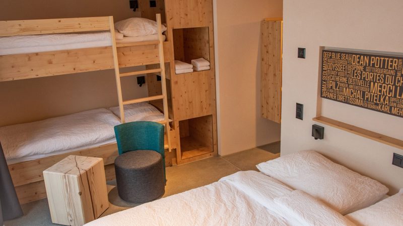 Eiger Lodge Chic: In diesen Zimmern dreht sich alles um die Wand: um die Eigernordwand und ihre Kletterer, und auch: um die Trennwand zum Bad. Denn im schicken Teil hat jedes Zimmer eine Dusche und ein WC. Welche inspirierende Nordwand-Geschichte dich im Zimmer erwartet, bleibt ein Geheimnis, bis du ankommst.