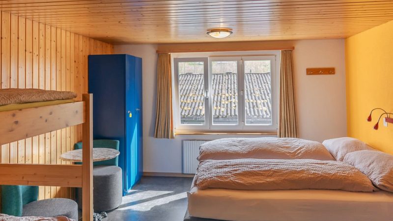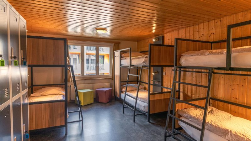 Eiger Lodge Easy: Doppelzimmer, 4-Bett-Zimmer, 6-Bett-Zimmer oder ein einzelnes Bett: Alle unsere Zimmer sind mit einem Waschbecken, einem abschließbaren Schrank und einer Lampe pro Bett ausgestattet. Die Duschen und Toiletten befinden sich auf der Etage (Erdgeschoss). Bettwäsche ist inbegriffen, Handtücher können auf Anfrage gemietet werden. Es können einzelne Betten oder ganze Zimmer gebucht werden.