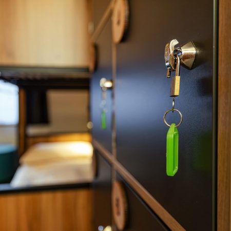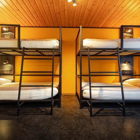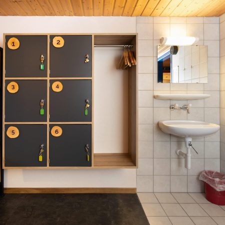 Alle unsere 6-Bett-Mehrbettenzimmer in der Eiger Lodge Easy sind mit Kajütenbetten, einem Waschbecken, abschliessbaren Schrank sowie einem Licht pro Bett ausgestattet. Die Dusch- und Toilettenanlage befindet sich auf der Etage (Erdgeschoss). Bettwäsche ist inklusive, Frottéewäsche kann auf Wunsch gemietet werden.